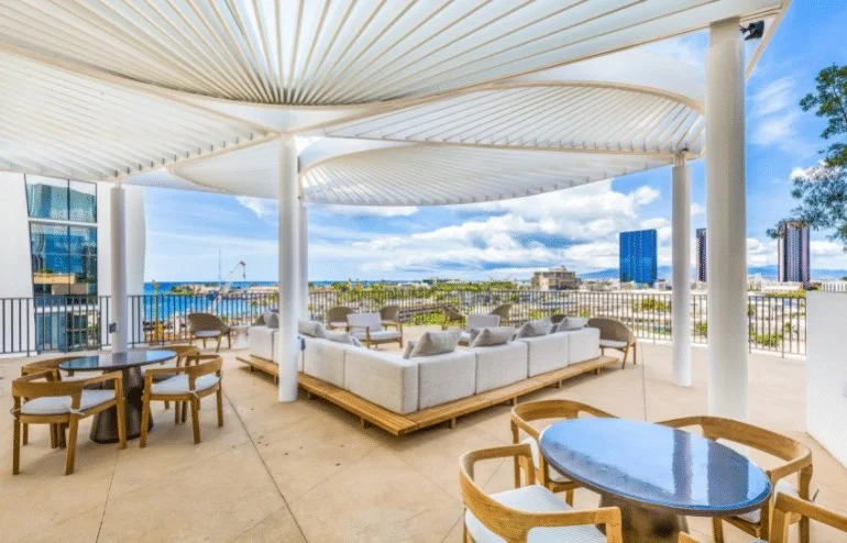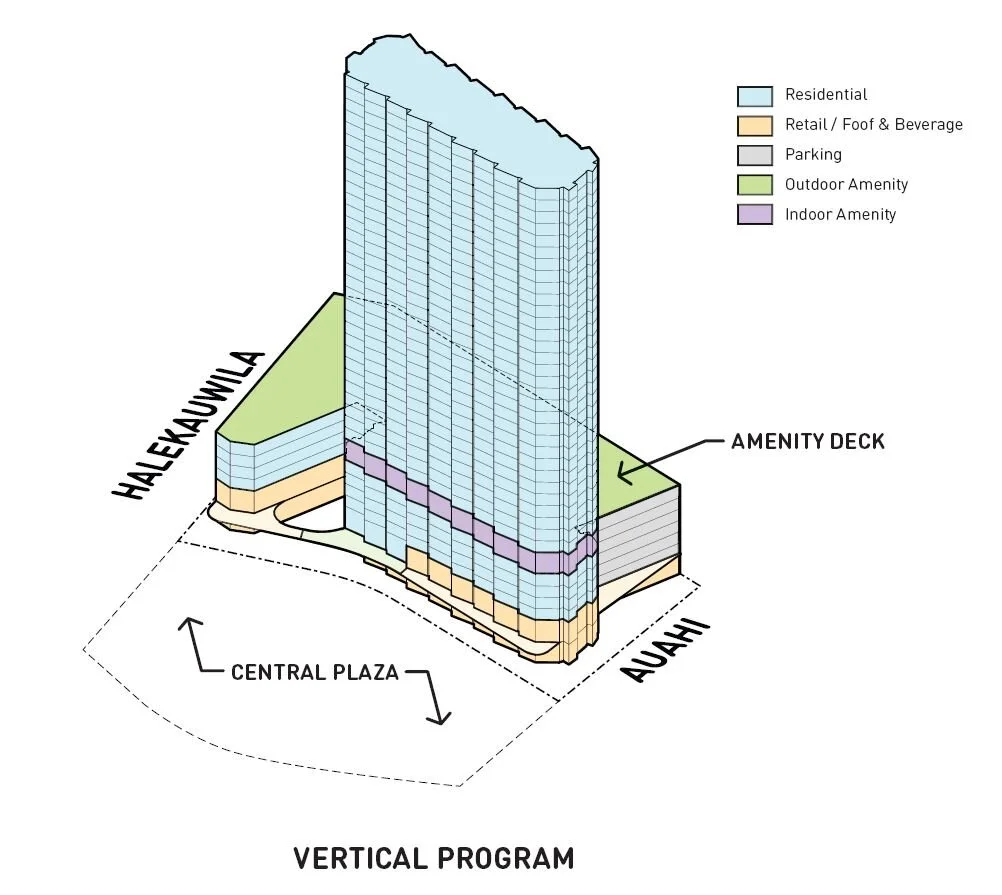 As the first residential tower to be built along Victoria Ward Park and taking formal inspiration from local flora, Ko’ula uniquely exemplifies the concept of “sculpture in the garden”. The Ward Village neighborhood in Honolulu was developed with the community planning goals of environmentally conscious, pedestrian friendly, and distinctly place-making quality design. The architecture and interior design blend outside and inside seamlessly into a serene, comfortable, and effortlessly elegant lifestyle for those who call Ko’ula home. Each of the residential units offer mauka to makai views and shaded lanais. The amenities level is an unparalleled offering of indoor and outdoor exercise, relaxation, and gathering spaces - including a pool and spa with views of the ocean. Residents and visitors alike will be able to enjoy activities in the park, vibrant street life, and proximity to the waterfront.